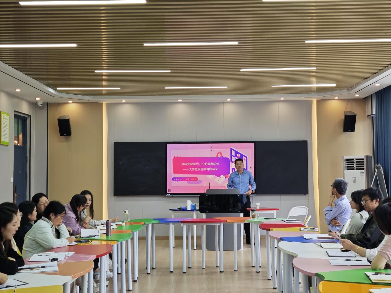 最后,李广以《筑牢安全防线,护航青春成长——大学生安全教育启示录》为题,分享了安全教育的最新典型案例。这些案例再次敲响了安全教育的警钟,强调了在日常工作中全面加强学生安全意识培养与风险防范教育的重要性。