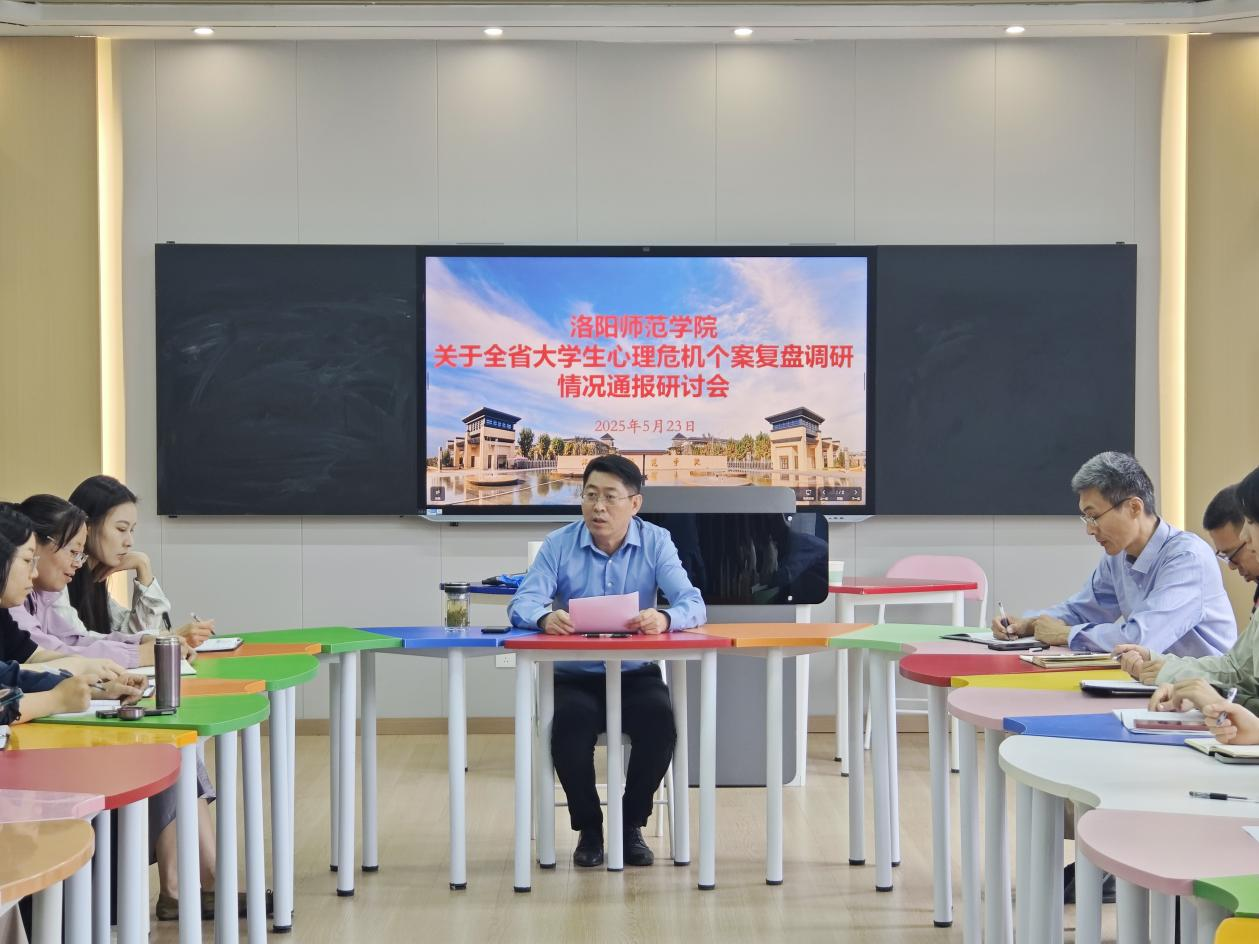 2025年5月23日,我校关于全省大学生心理危机个案复盘调研情况通报研讨会在心理健康教育与咨询中心222室顺利举行。本次会议由校党委学生工作部副部长、心理健康教育与咨询中心副主任李广主持,各书院社区主管学生安全教育工作副书记、心理健康教育中心主任参加。