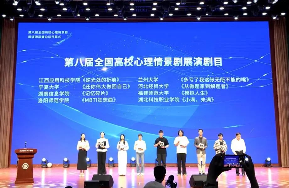 5 月 16 日至 18 日,“第八届全国高校心理情景剧展演暨全国高校心理情景剧论坛” 在山东轻工职业学院顺利举办。我校心理情景剧剧目《MBTI 狂想曲》在现场展演中表现出色,赢得了现场观众和评委的一致好评。