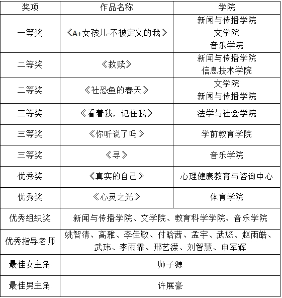 本次大赛通过心理情景剧的表演再现大学日常生活中常见的心理冲突,帮助同学们感悟生活,学习心理调适方法,主动关注自我的心理健康,不断提高自身的心理健康水平。希望获奖的单位和个人珍视荣誉,再接再厉,不断提升心理剧的创作水平,发挥示范作用,使心理剧这一心理健康教育的形式不断深入人心,进一步拓展学校心理健康教育工作覆盖面,切实提升心理健康教育工作质量。