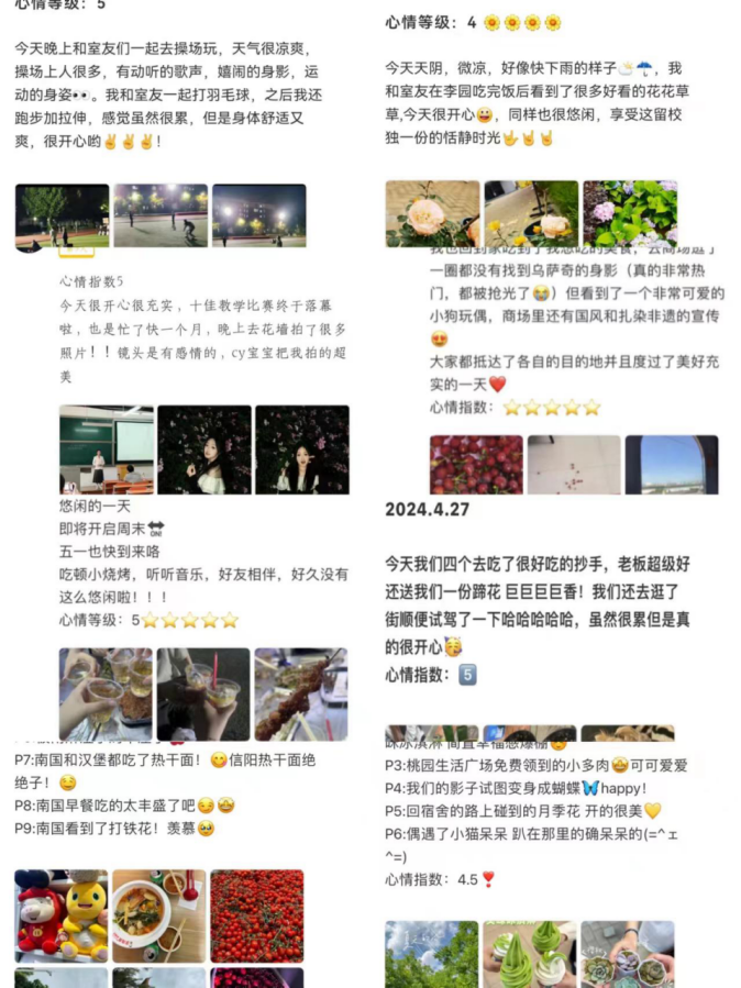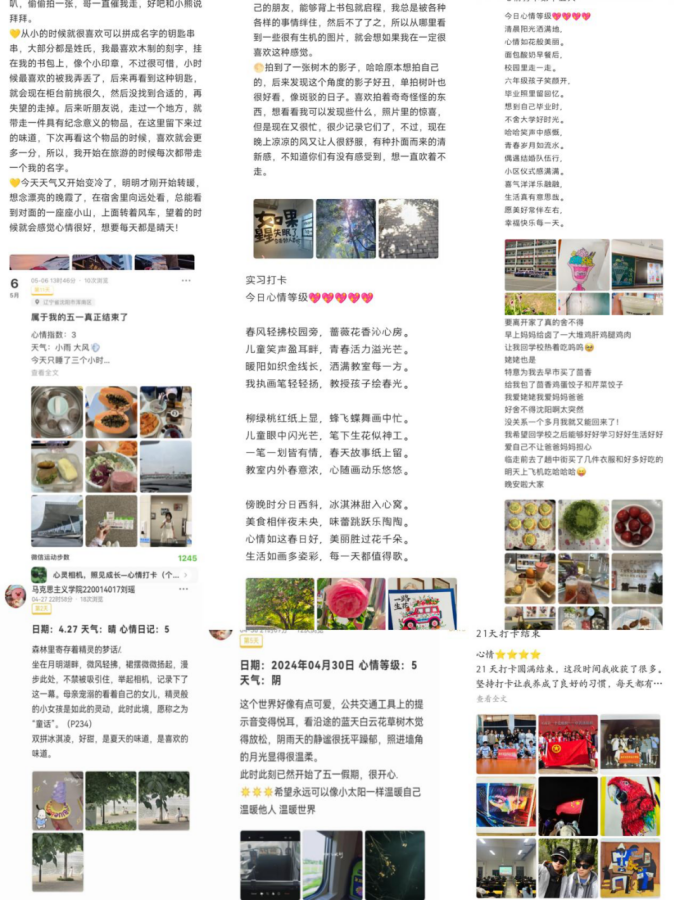 开展“心灵相机,照见成长”心情日记打卡活动,鼓励大家发现生活中的小美好,拍摄记录积极的日常生活,对照片进行感悟和反思,帮助学生不断调节心情,提升自我认知水平,实现心灵的疗愈和成长。
