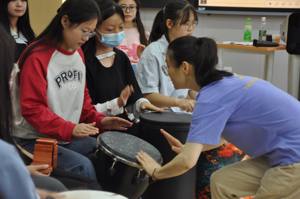 开展“鼓乐心声”音乐减压团辅活动,通过音乐与鼓点,让同学们释放压力,增强自我凝聚力,收获心灵宁静。
