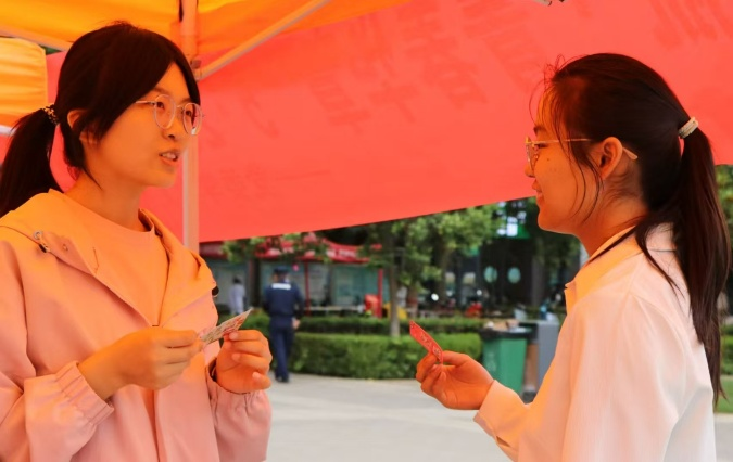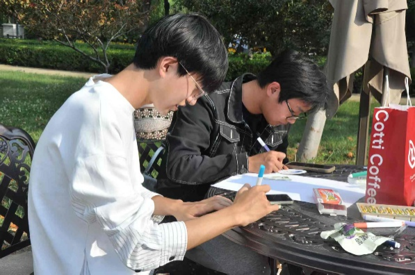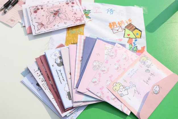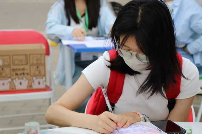 同学们拿起笔,在稿纸上给一年后的自己写一封信。参与者可以选择当场带走这份期许,也可交由活动负责人保管,待来年举办525心灵广场活动时领取。在为他人写信的同时,也可以收获不期而遇的感动。活动结束,在卡片印上“我”字,封存这份美好期待。