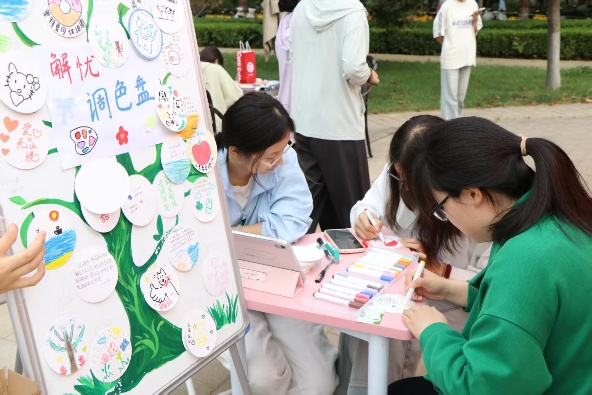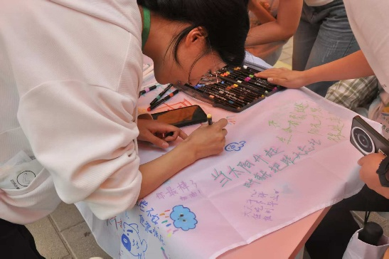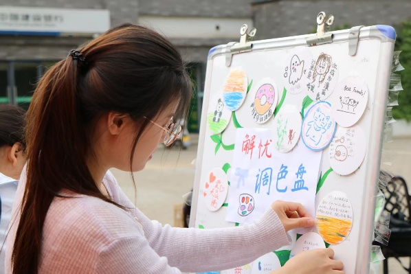 此次“心悦启航·青春华章”心灵广场活动,围绕助力学生心灵成长展开,设置了丰富多元的互动板块。心灵“旗”迹,鼓励同学们留下勇敢印记或暖心话语;你划我猜,以趣味互动增进彼此情谊;时空信箱,为未来的自己寄去期许;解忧调色盘,助大家用创意排解压力。这些精彩环节,成功点燃同学们的参与热情,大家全身心投入,收获满满。