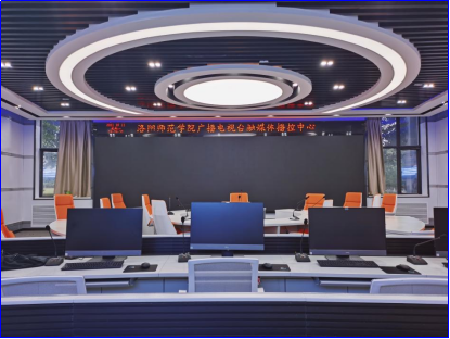 2020年5月投入使用,电视演播室升级改造为4K实景演播室并投入使用,面积120m2,面向新闻学、广播电视编导及播音与主持艺术专业学生,承担校园电视台《洛师新闻》等节目的配音和制作。