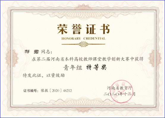 河南省本科高校教师课堂教学创新大赛青年组特等奖