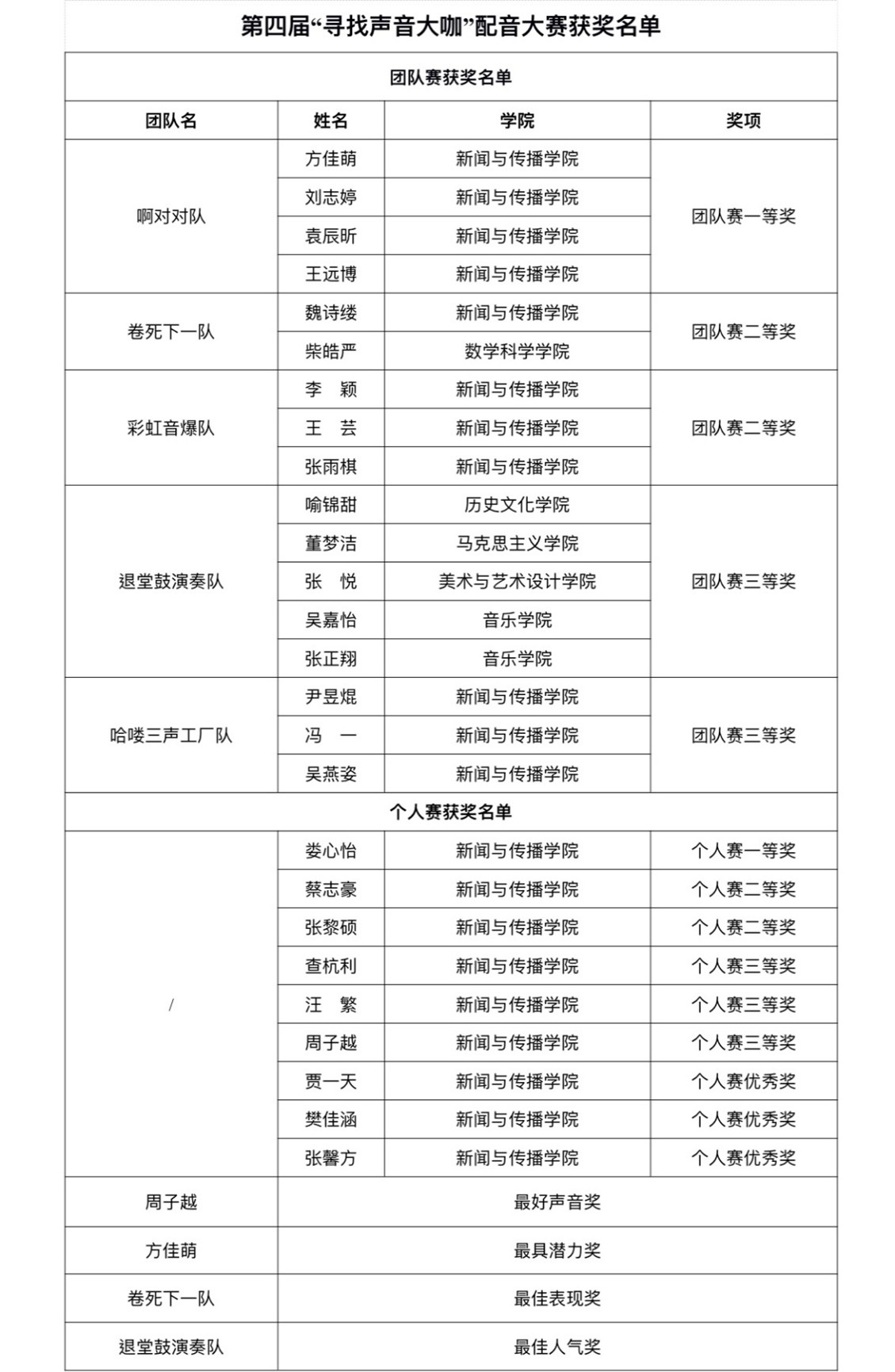 (获奖名单)