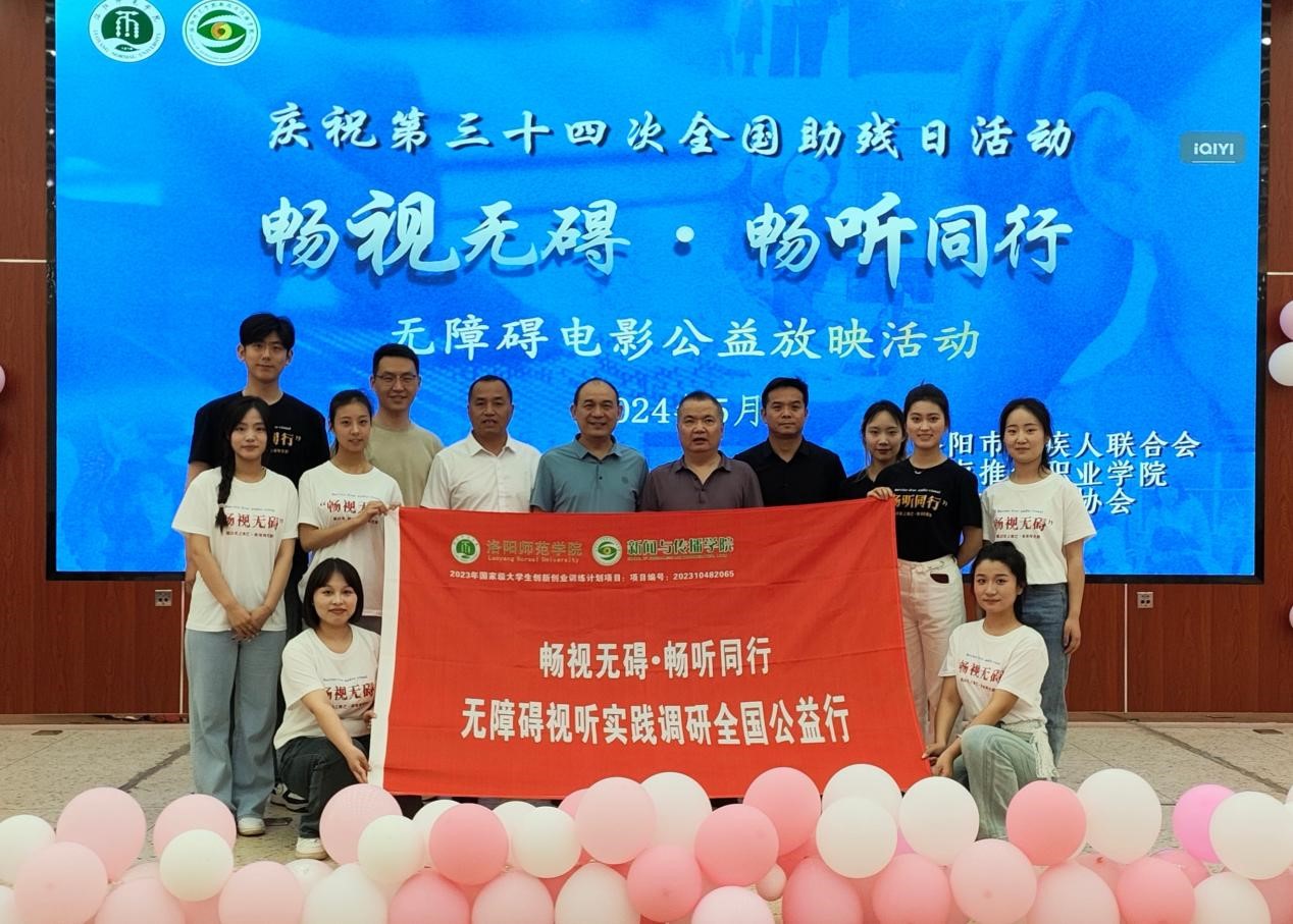 在第三十四次“全国助残日”即将来临之际,我院“畅视无碍·畅听同行”公益团队前往河南推拿职业学院,在图书馆一楼报告厅举办无障碍电影公益放映活动。洛阳市残疾人联合会秘书长王振飞、河南推拿职业学院学生处处长陈军、洛阳市盲协主席郭洁等领导出席现场活动。团队成员张晨昊、王鸽、吕凡、吴梦珂、王建晴、邵奕青、陶辰宇、万汝鑫等8位同学为针灸推拿系(特殊教育中心)的视障同学们带来了一场身临其境的“观”影体验,并全程提供助盲服务。