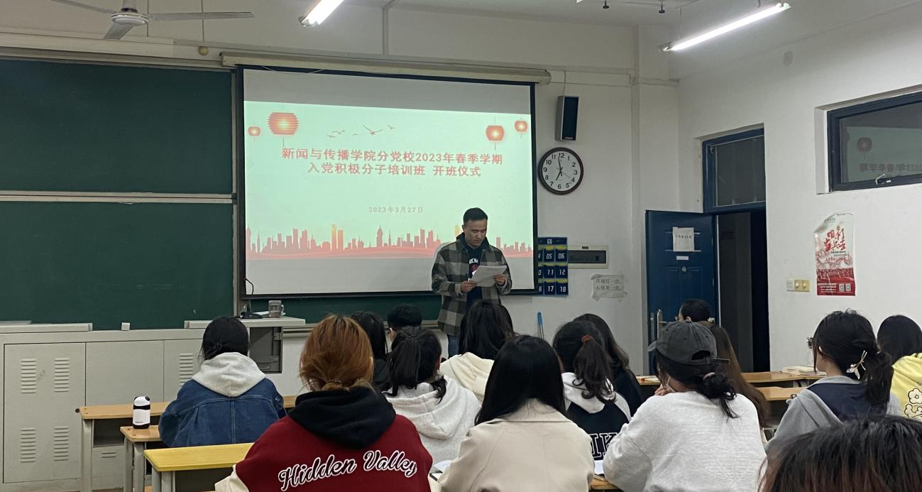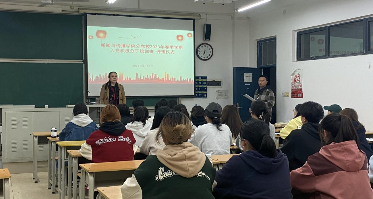 3月27日,我院2023年春季学期入党积极分子培训班开班仪式在A9-204举行。新闻与传播学院党委书记钱越、21级辅导员冯依晴、22级辅导员李清爽以及本期培训班共34名学员参加开班仪式。新闻与传播学院党委组织员李玉刚主持开班仪式。