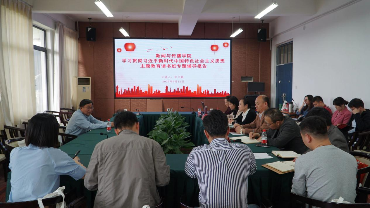 开班仪式结束后,校党委副书记宋文献作主题教育专题辅导报告。他指出,要增长历史知识,培养历史思维,树立正确的历史观;要全面领会习近平总书记的重要讲话精神,结合新传院专业特点,重点学习习近平总书记关于新闻舆论工作、文艺工作和文化传承创新的重要论述,并将其内化于心,外化于形;要深刻学习习近平新时代中国特色社会主义思想,深化对三个历史决议的理解,总结历史经验,做到统一思想,坚决反对历史虚无主义;要重视“环境育人”的作用,建设和谐向上的教学环境。他还就如何更好地学习习近平总书记的重要讲话精神提出建议:结合专业特点,运用生活化的语言方式进行播报,将自身专业能力的提升与主题教育学习进行深度融合。