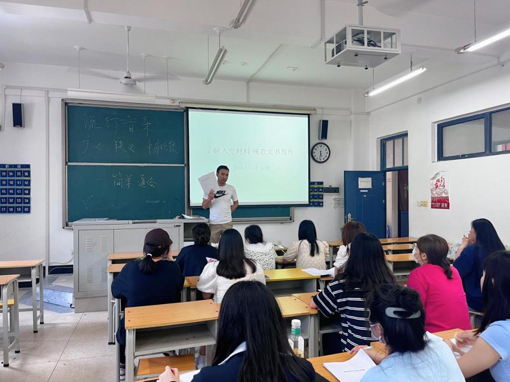 4月6日,我院在A9-203为入党积极分子开展以“了解入党材料,规范文书写作”为主题的党课培训,学院党委组织员李玉刚担任主讲人。