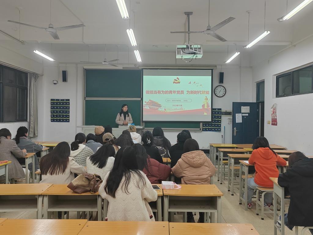 11月8日,我院分党校2023年秋季学期入党积极分子培训班第十八讲在A9-204教室开讲。本次党课的主题为“做担当有为的青年党员,为新时代赋能”。我院党委副书记金宜洛担任主讲人。