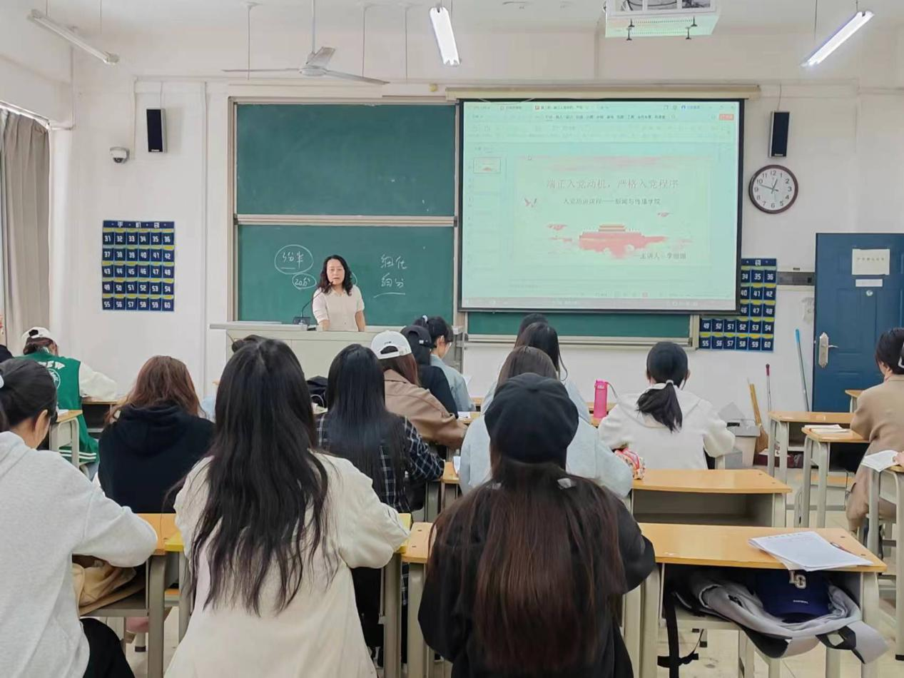 4月10日,我院在A9-204教室开展主题为“端正入党动机,严格入党程序”的党课培训,我院党委委员、副院长李姗姗担任主讲人。