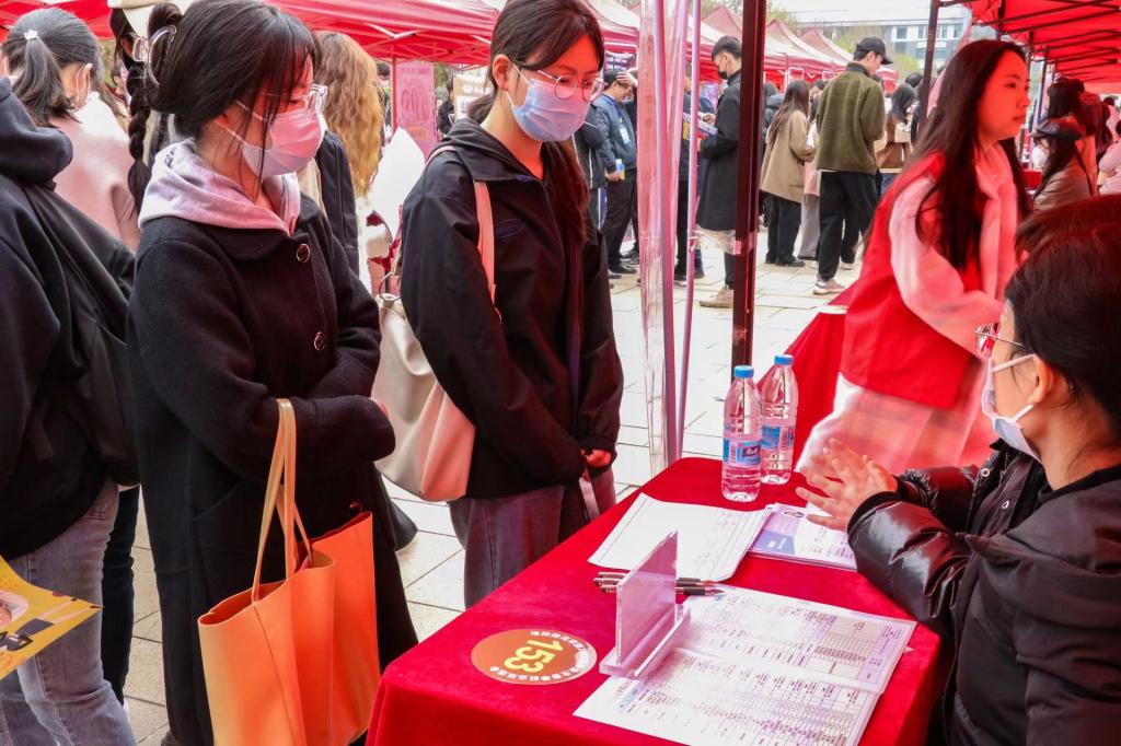 3月25日上午,我校2023届毕业生春季校园“双选会”在图书馆南广场举行。我院积极组织2023届毕业生参加此次“双选会”。院党委书记钱越带队,副书记金宜洛及毕业班辅导员、就业负责老师到达双选会现场为毕业生答疑解惑、与用人单位沟通交流,推荐毕业生,助力毕业生成功就业。