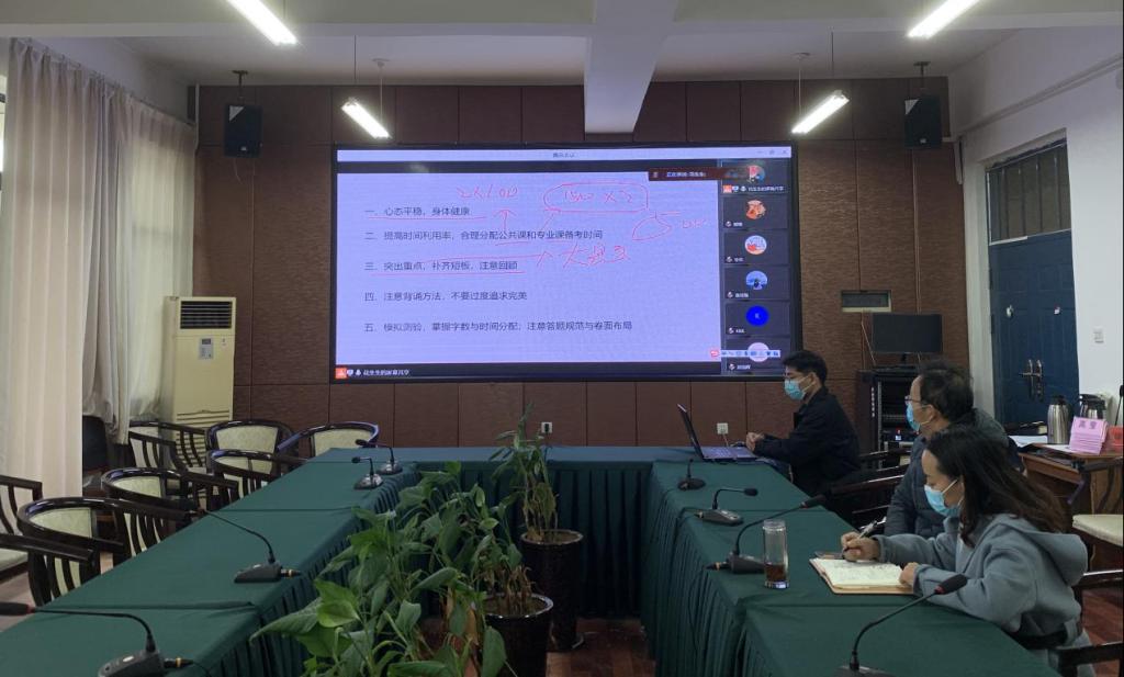 为缓解考研学生冲刺阶段的心理压力、增加信心,11月29日上午,我院通过腾讯会议召开了考研冲刺动员与指导会。副院长李姗姗、于正凯,专业教师李丹丹、刘凡进、潘佳璇、信博出席会议。部分2019级考研学生参加会议。