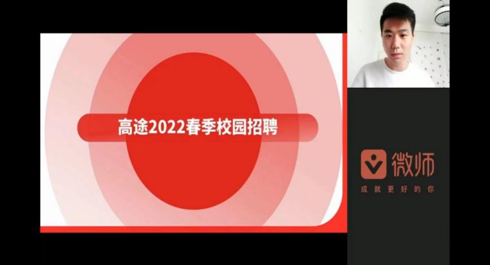 为进一步做好疫情防控期间2022届毕业生就业工作,全力为学生就业拓宽渠道、挖掘资源、争取岗位,增加毕业生就业机会,5月10日,我院通过线上微师平台举办了高途2022年春季校园招聘空中宣讲会,助力毕业生网上“云就业”。