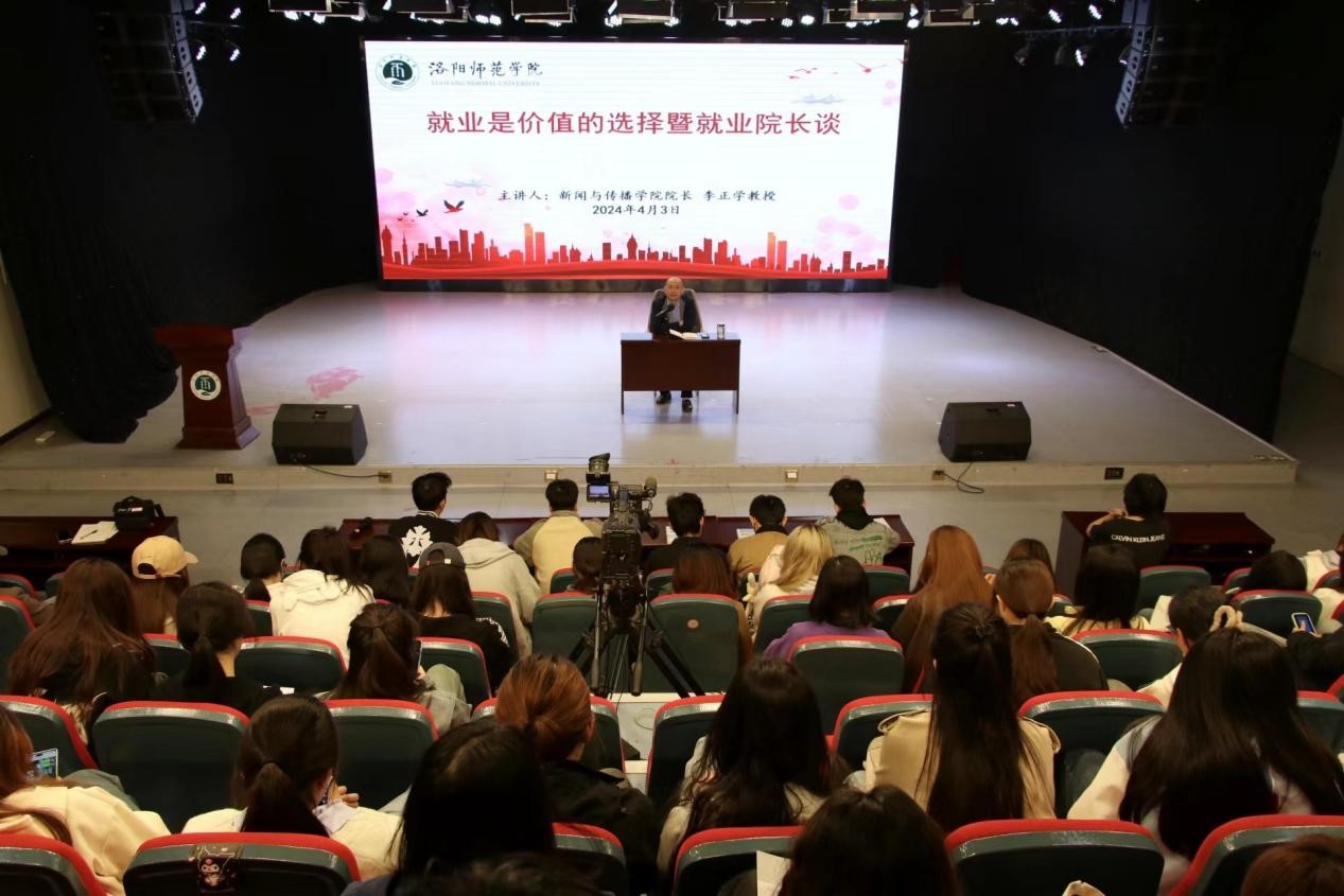 4月3日上午,我院院长李正学在新闻传播学院演播厅以《就业是价值的选择暨就业院长谈》为题,为新闻与传播学院大一学生代表讲授了一堂精彩纷呈的“开学思政第一课”。