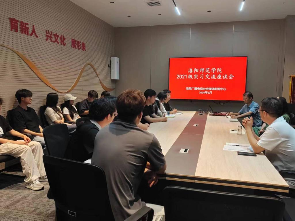 6月21日,洛阳师范学院新闻与传播学院、洛阳广播电视台2021级实习交流座谈会在洛阳广播电视台全媒体新闻中心举行。洛阳广播电视台全媒体新闻中心编辑部部长姚红亮、采访部部长杨芬、采访部副部长张健、洛阳师范学院新闻与传播学院副院长李姗姗参加本次交流座谈会。