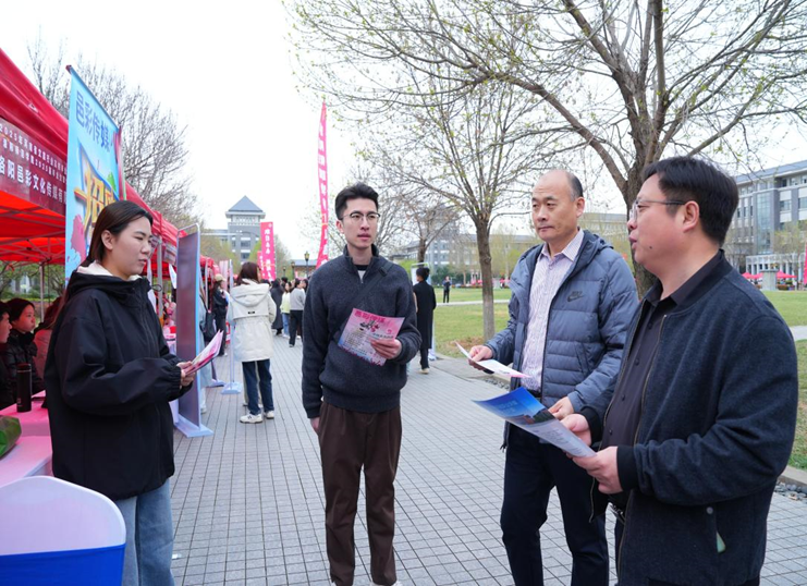 在双选会现场,同学们携带提前准备好的简历到各招聘展位前,询问岗位信息及用人要求、薪资待遇等情况,并结合自身实际情况,向心仪岗位投递简历。我院党委书记韩守东、院长李正学深入双选会现场,与用人单位进行交谈,了解其招聘规模、薪资待遇,同时也与毕业生们深入交流,询问其个人规划、求职进展等情况,并鼓励毕业生们努力提升综合素质、调整就业心态以适应未来的就业形势。