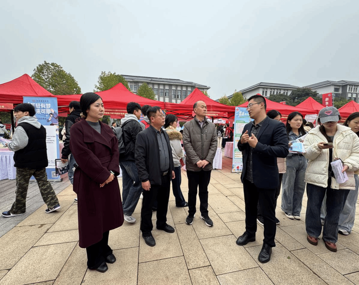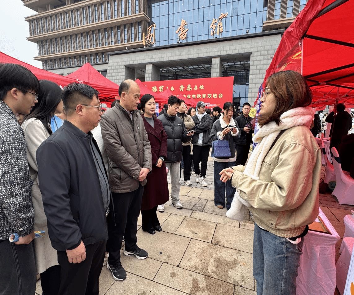 10月25日,由洛阳师范学院2026届毕业生秋季双选会在我校太学广场成功举办。我院党委书记韩守东、院长李正学带队,院党委副书记金宜洛、就业负责老师及毕业班辅导员莅临双选会现场,走访了部分用人单位,全面且详细地了解了这些单位的招聘计划以及现场招聘的实际情况。