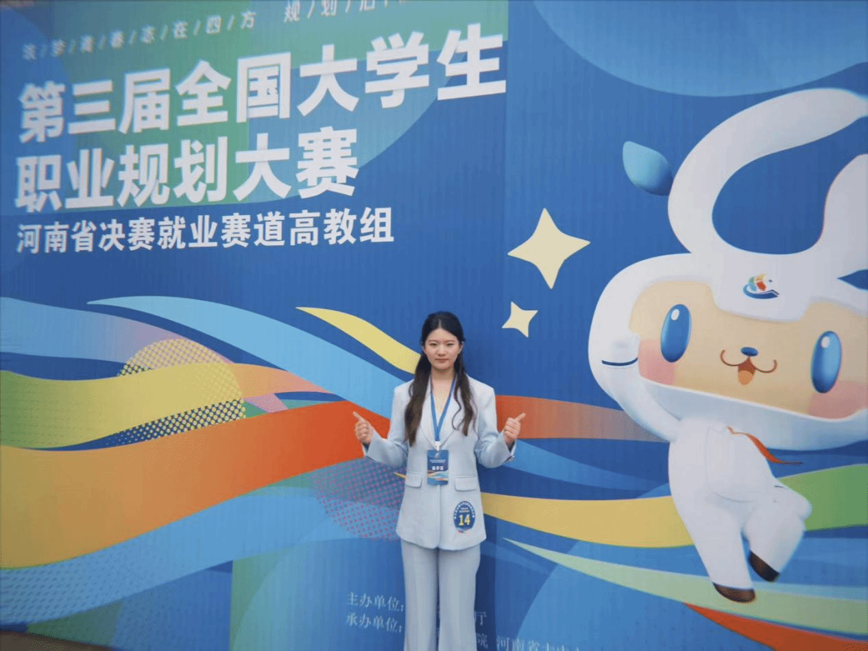 比赛过程中,她反复打磨职业逻辑,梳理成长脉络,将每一次实践都转化为演讲中真实有力的注脚。她深知,职业发展从来不是一成不变的蓝图,而是在持续行动中动态调整的过程。最终,她用扎实的专业积累、清晰的职业路径和坚定的创作信念,赢得了评委的认可,成功摘得河南省职业规划大赛金奖。