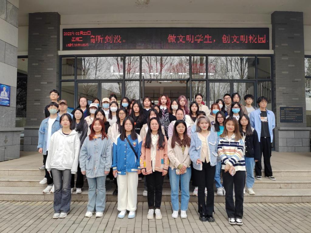 洛阳理工学院学生在洛阳师范学院新闻与传播学院正门留下合照