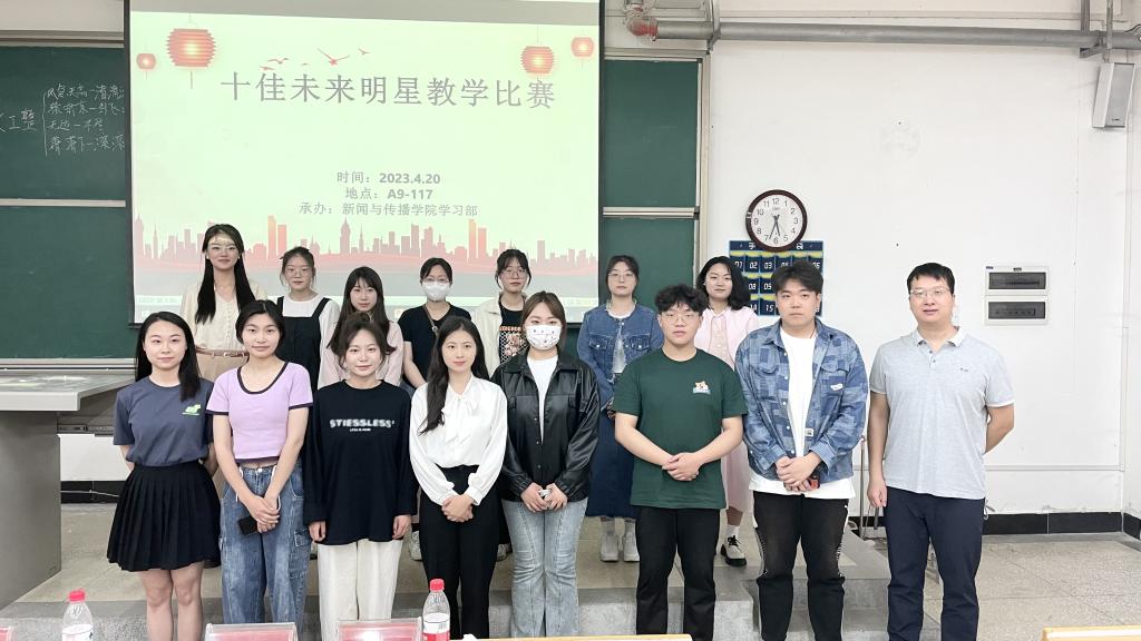 为进一步传承和弘扬我校百年师范特色,秉承“敬业奉献为人师表”的校训精神,强化学生对老师职业的尊重和认同,提升师范技能和综合素质打下良好的基础。4月20日下午,我院学生会学习部举办的“新闻与传播学院第31届十佳未来明星教学大赛”在A9-117举行。本次比赛评委由广播与电视编导专业教师姜鹏,“十佳未来明星教学”获奖者刘思雨、院学生会执行主席高晓涵、院学生会主席成员高菡江等人担任。