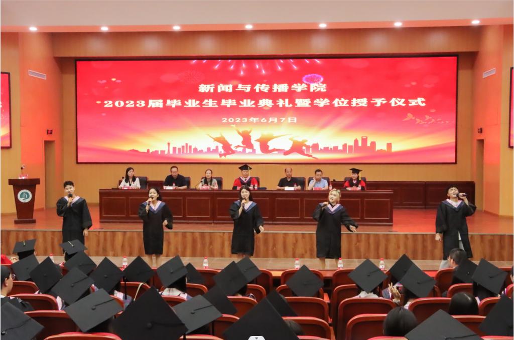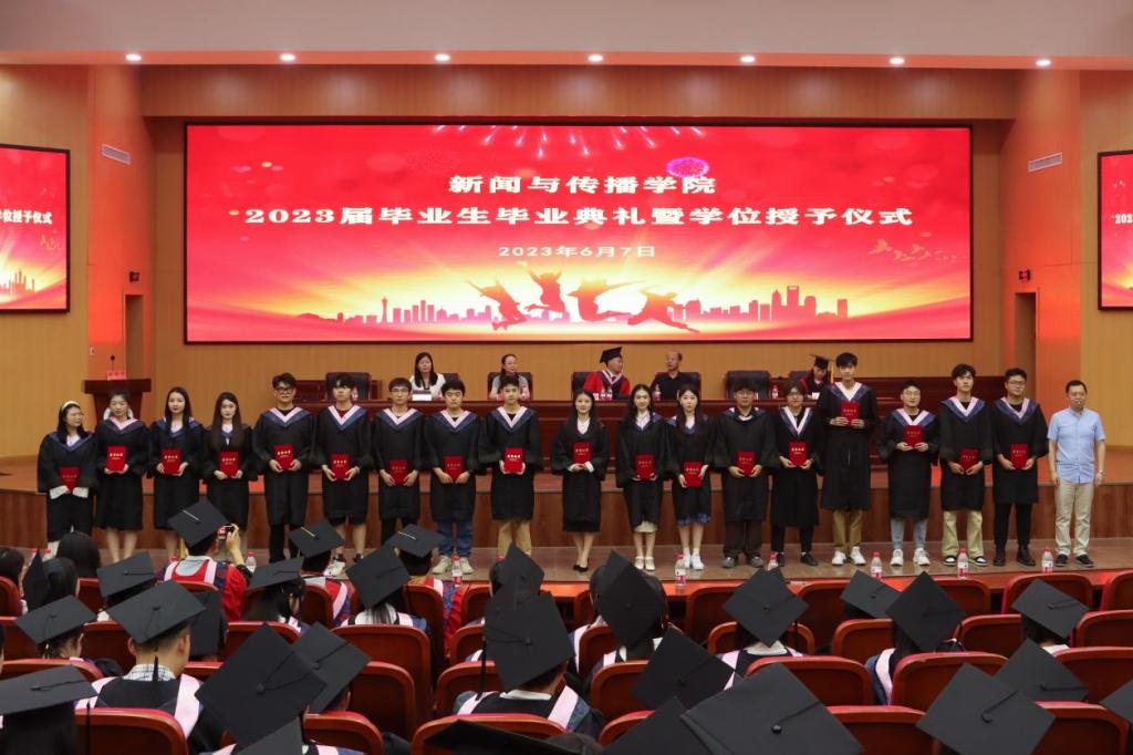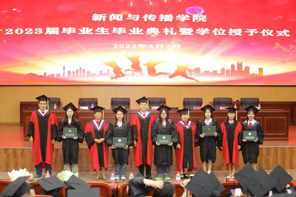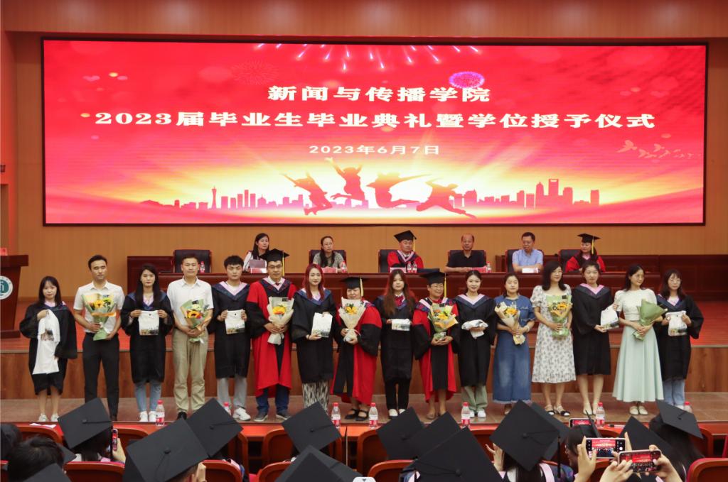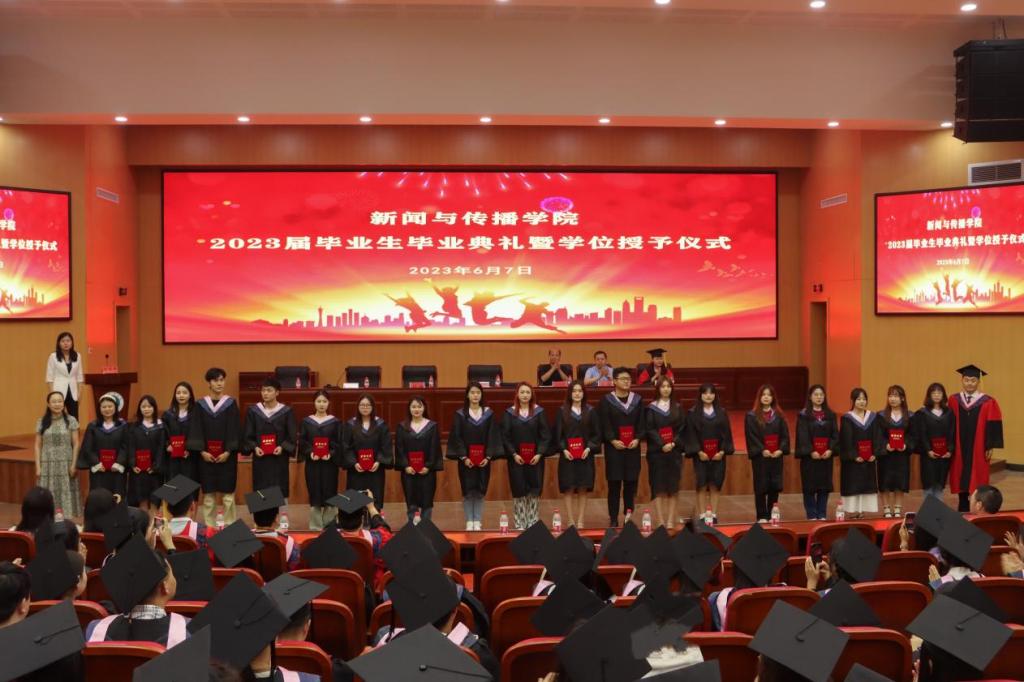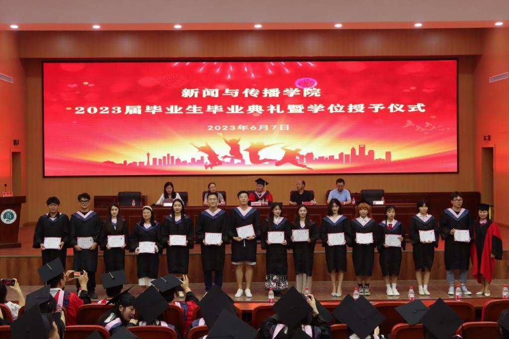 党委书记钱越宣读《新闻与传播学院关于表彰2023届毕业生先进个人的决定》,副院长于正凯宣读《新闻与传播学院学士学位授予决定》,副院长李姗姗宣读首届《融媒体卓越人才实验班结业学员名单》,他们对2023届毕业生取得的优异成绩表示肯定和祝贺。