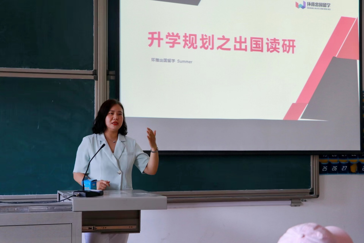 6月14号下午,我院于A9-203举办海外研究生申请与准备·咨询交流会,本次会议邀请环雅出国留学首席留学规划师Summer老师和洛阳环球雅思教研主任黄永辉老师为同学们分析出国留学的情况以及流程规划。