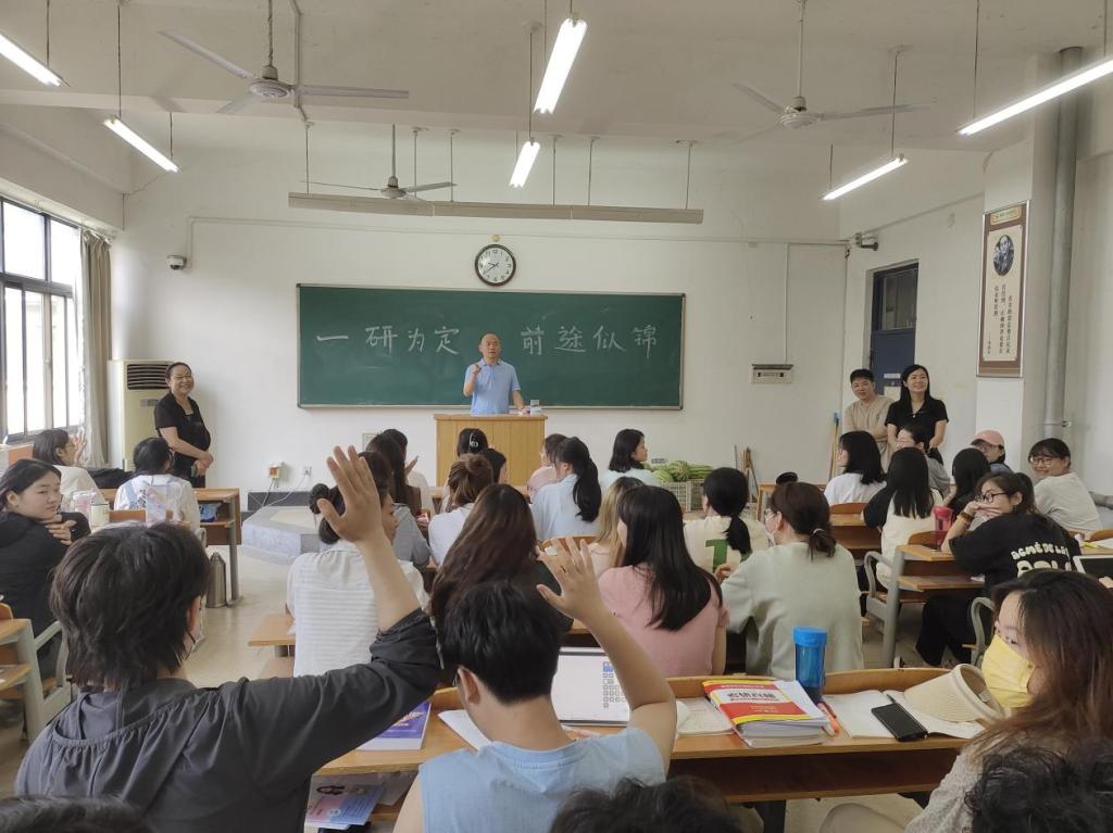 钱越对同学们暑期的生活状况表达了关心,提醒同学们在努力学习的同时要注意补充营养、防暑降温,表示学院将努力为同学们营造良好的暑期复习备考环境,鼓励同学们要坚定信心,充分利用好暑假黄金期,力争“一研为定”。