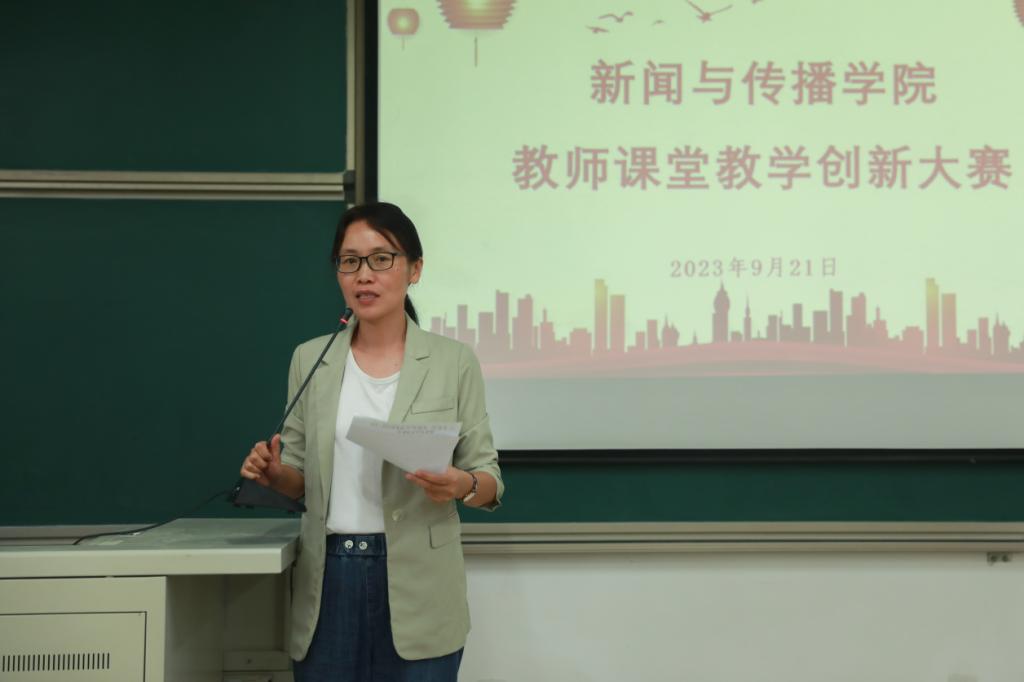 为提高教师教学创新能力,激发教师教学热情,不断提升教师教学水平。学院于9月21日在A9-205教室举办教师课堂教学创新大赛。洛阳师范学院教务处副处长赵虹元教授,文学院孙丽老师,新闻与传播学院张文萍、姚智清、马春华老师应邀担任大赛评委。副院长李姗姗及部分师生代表观看比赛。