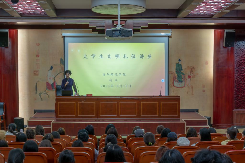 10月12日晚,我院于逸夫教学楼G5-102举行《就业指导之求职礼仪》专题讲座。此次讲座由我校国家语言文字推广基地执行主任赵江老师主讲。龙门书院二号院师生代表200余人到场聆听。