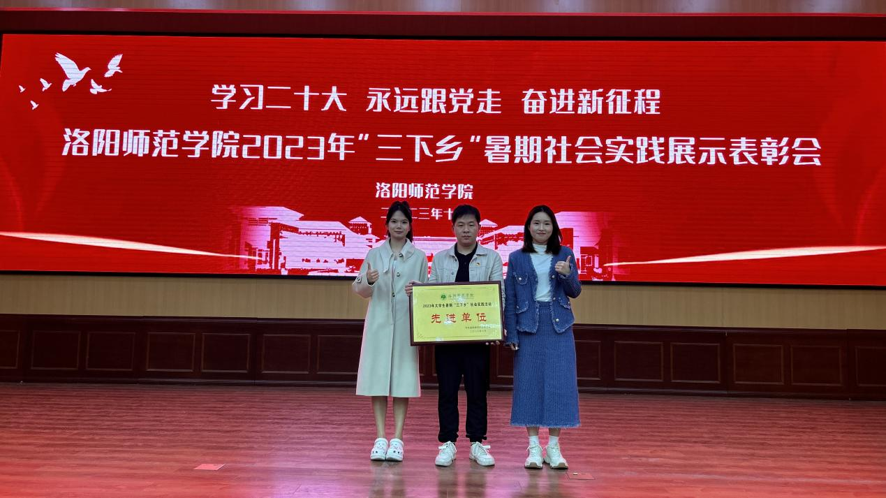 10月19日下午,洛阳师范学院2022年“三下乡”暑假社会实践展示表彰会暨志愿服务品牌建设部署会在G1-112报告厅召开,我院荣获2023年大学生暑期“三下乡”社会实践活动先进单位,“益”起推普爱心实践队荣获暑期社会实践优秀成果三等奖。
