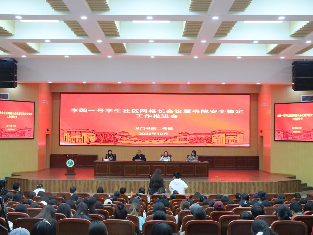 10月19号下午,龙门书院二号院在G1-112召开李园一号学生社区网格长会议暨书院安全稳定工作推进会议。书院党委书记张方方,院长钱越,党委副书记金宜洛、张曼,全体辅导员、李园一号学生社区网格长参加,会议由金宜洛主持。