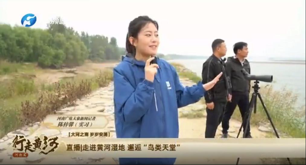 在洛阳孟津黄河湿地,陈梓馨通过采访湿地管理人员带领观众探索黄河之美、生态之美,充分展现了河洛大地挥笔描绘出的美丽生态的新画卷。