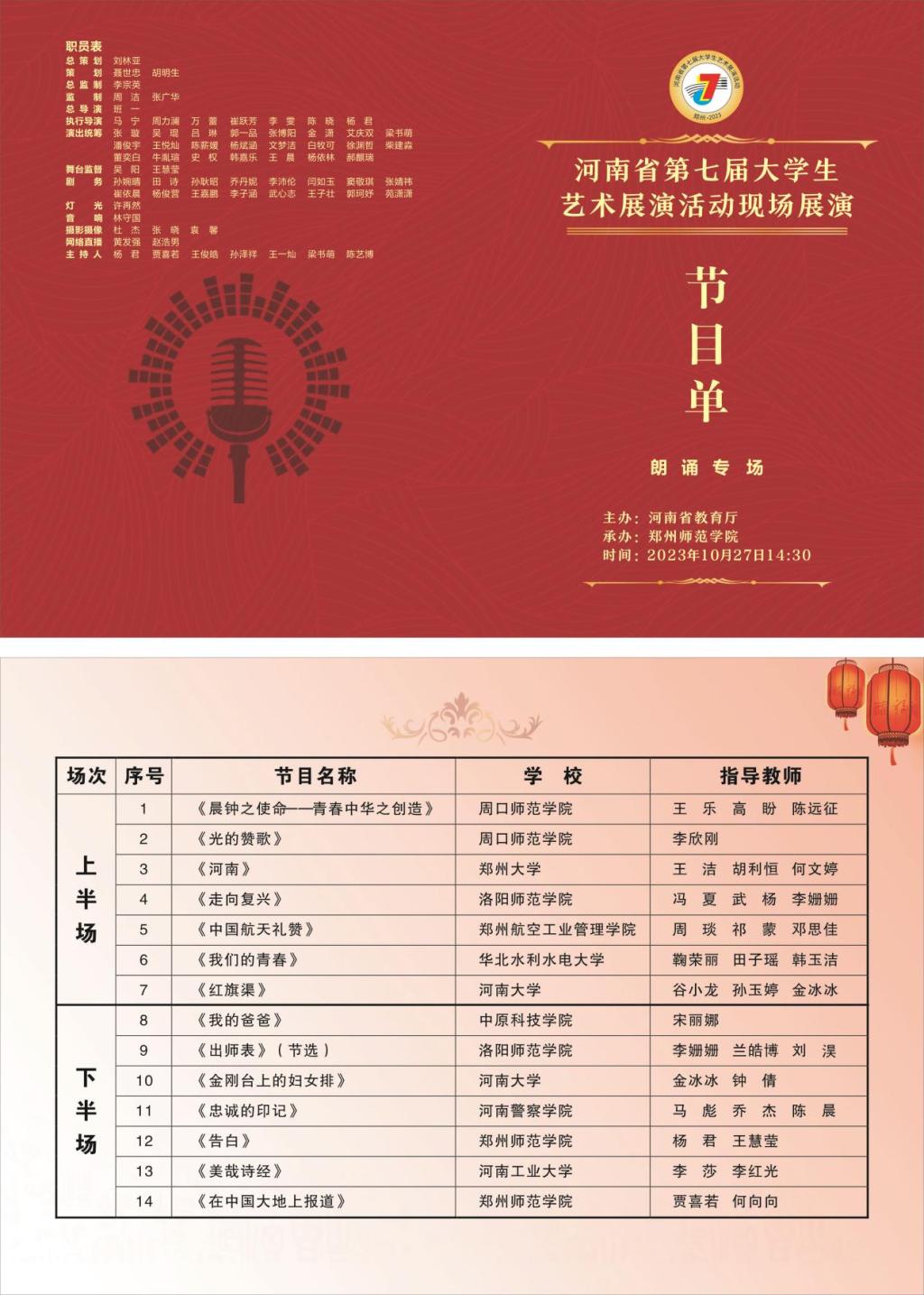 河南省第七届大学生艺术展演活动朗诵专场节目单