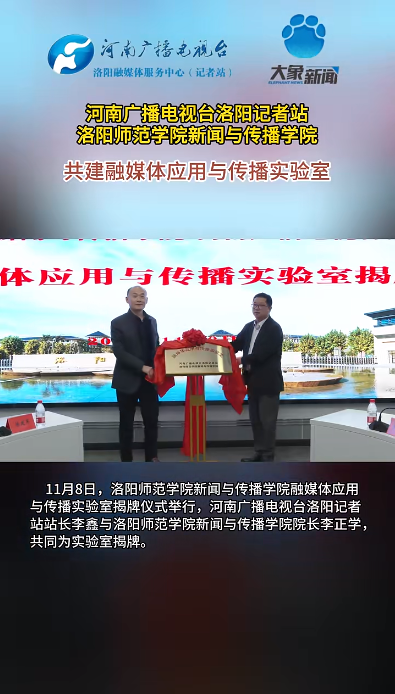 编者按:近日,河南省教育厅网站、人民日报客户端、河南省教育网、河南省广播电视台、大象新闻报道校媒合力共建共研,洛阳师范学院融媒体应用与传播实验室揭牌。