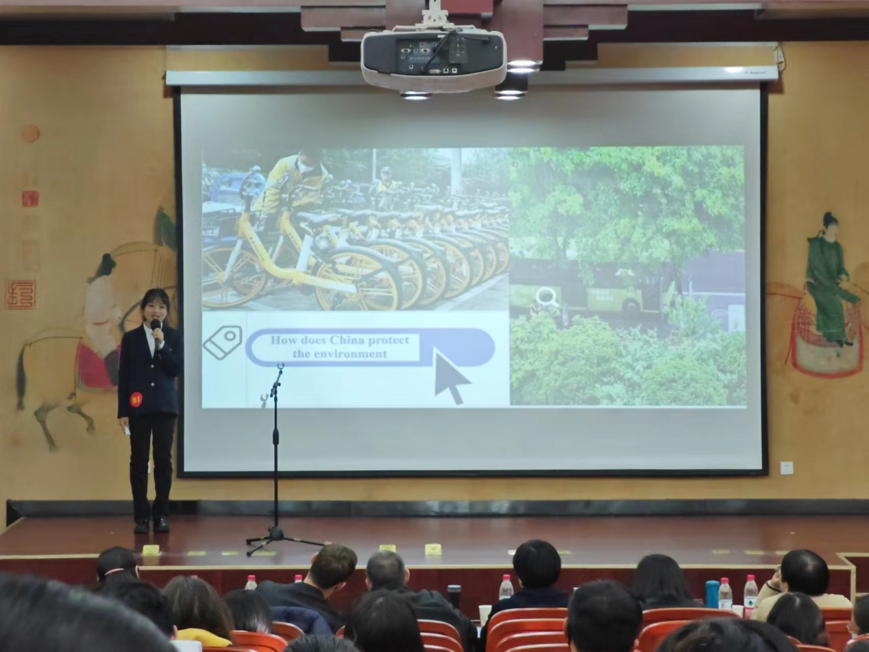 在本次比赛中,我院23级播音系娄心怡 、徐欣如两位同学荣获比赛非专业组的第一名和第二名。两位选手以“中国在世界环境保护方面,坚持自己的立场,在道路上不断前进”为主题。以核废水排放为例,阐述人类与自然之间和睦相处的关系,呼吁人们尊重和敬畏自然。此次演讲中,她们语言流畅,逻辑严谨,切合主题,有着清晰的思路,从容的态度,坚定的信念,与外教教授间流利的对话,姿态落落大方,赢得阵阵掌声。