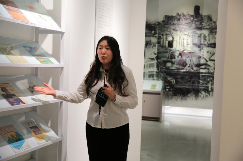 讲解员从一份民国三十七年的《人民日报》和一份民国三十八年的《河南日报》开始,介绍了中国共产党建党初期、第一次国内革命、土地革命、抗日战争、解放战争直到建国各时期党报党刊的发展史以及这些党报党刊在中国共产党发展进程中的地位和影响力。