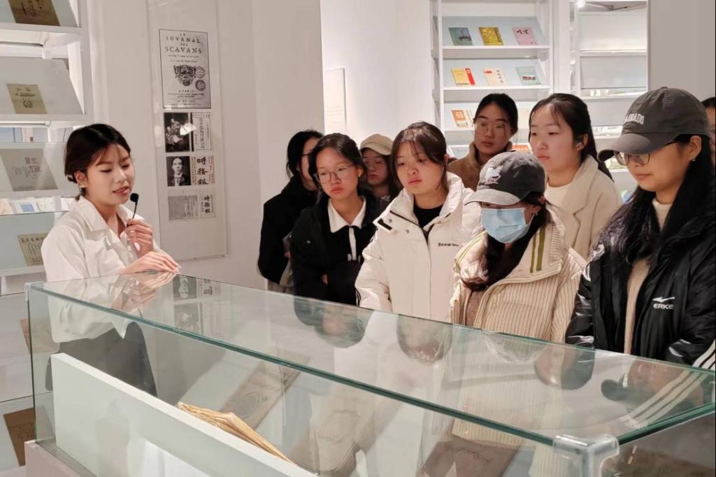 11月30日下午,我校青苹果旅行学社组织150名大一新生分批到新闻与传播学院中图期刊创刊号博物馆进行参观。