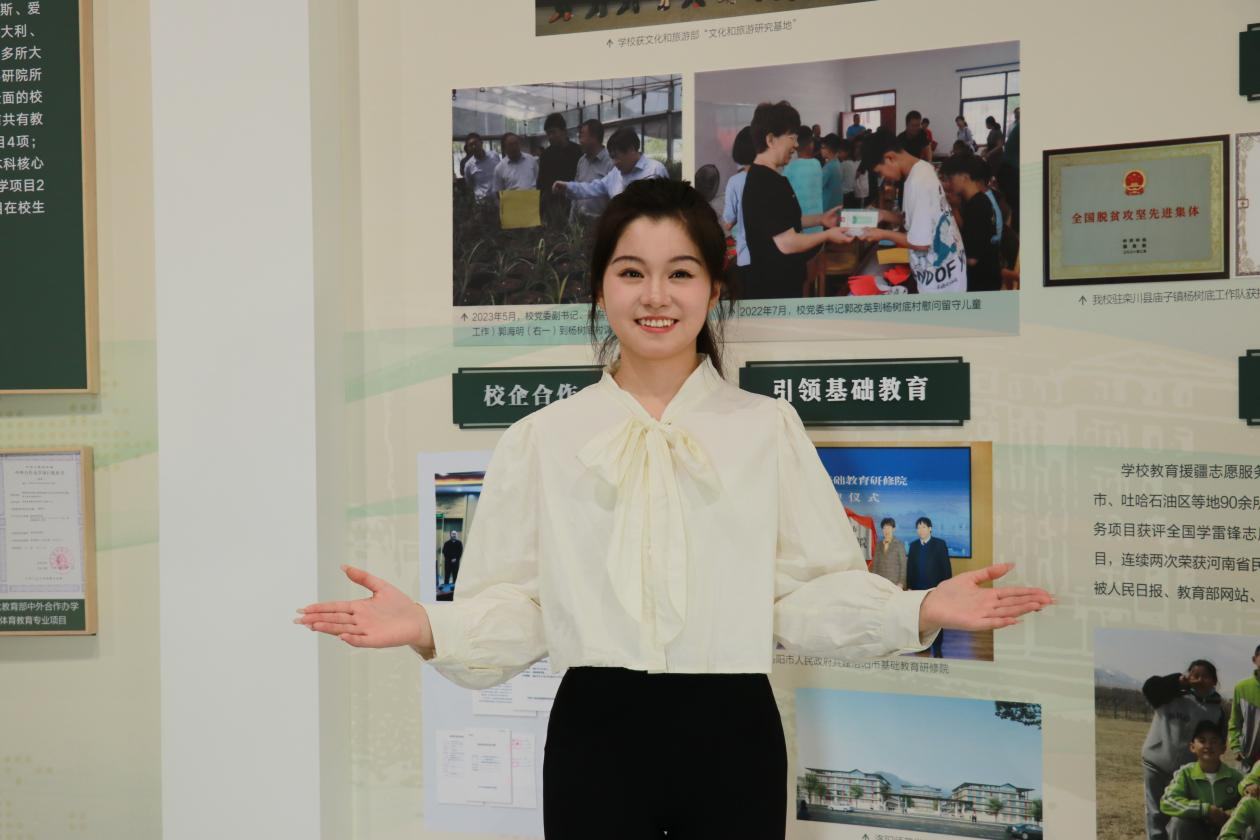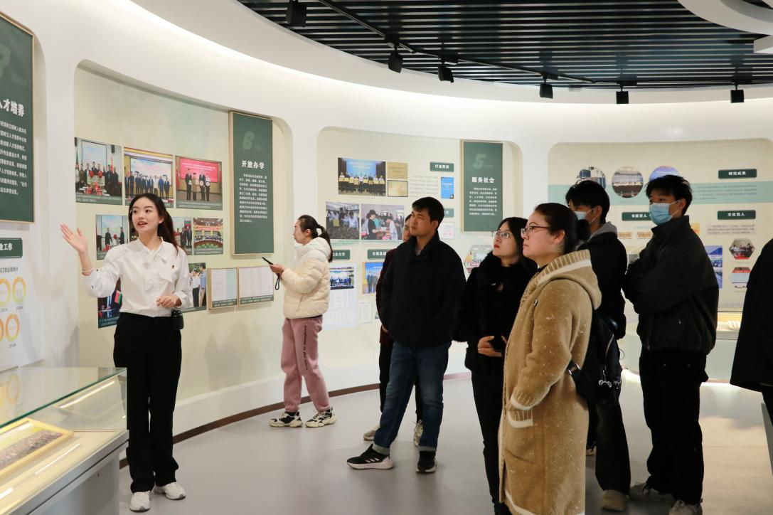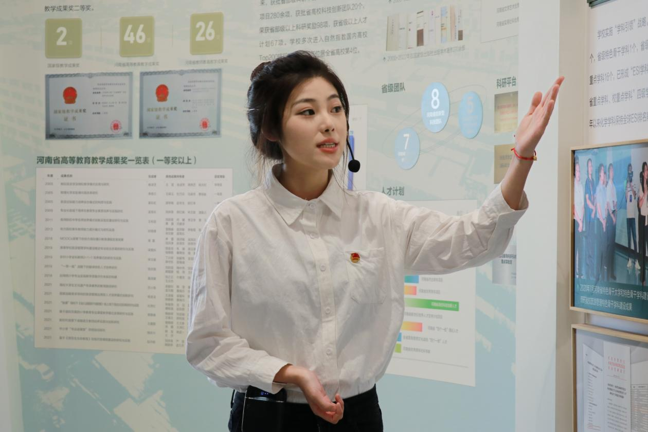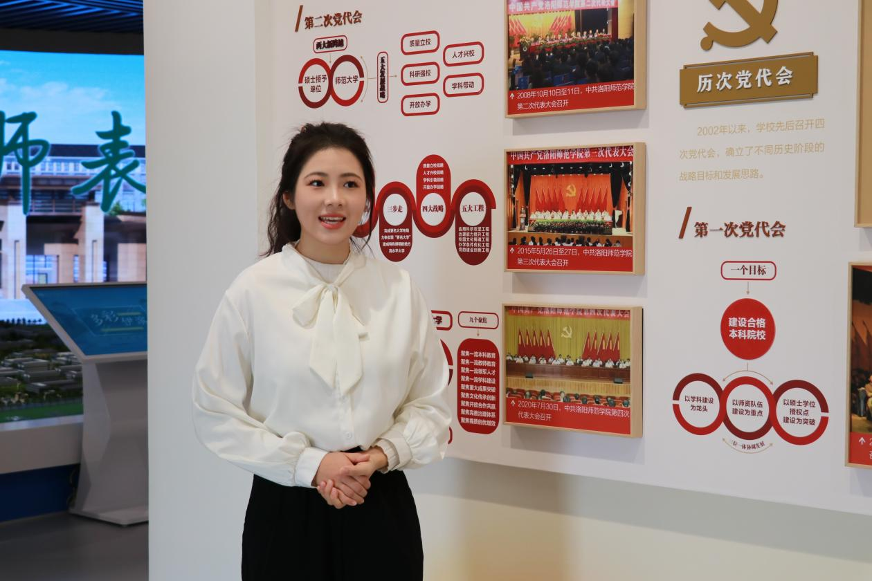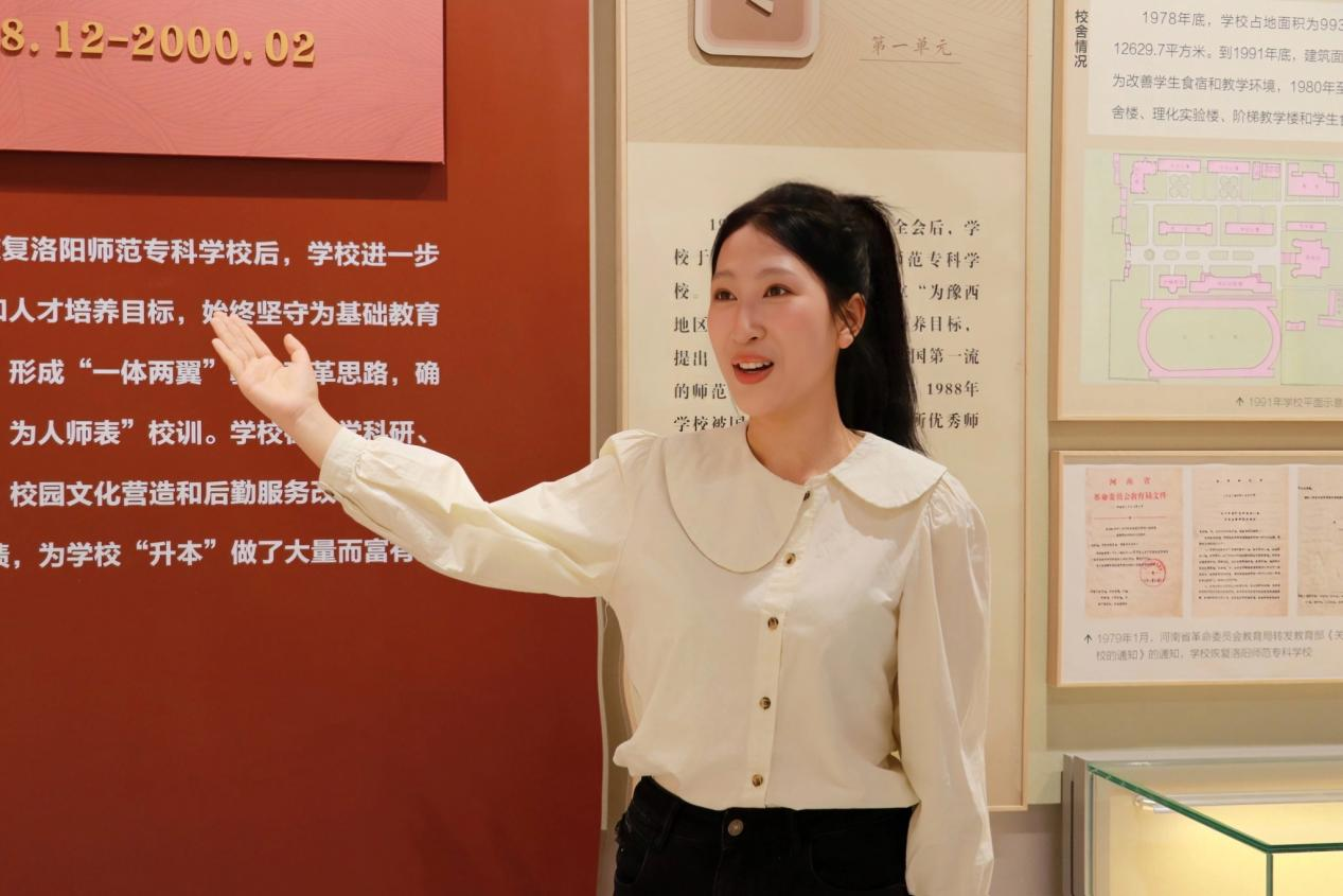 在活动现场,讲解员为大家介绍了校史馆大厅以“师范教育、尊师重道”为主题设计的浮雕。接着,讲解员们从“筚路蓝缕 河洛开元”“勤稼拙耕 河洛筑基”“器成师范 河洛弦歌”“赓续辉煌 河洛华章”四部分详细介绍了我校百年办学的光辉历程。