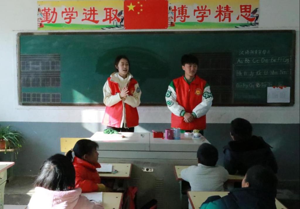 学生党员为上徐马小学的学生们进行支教志愿服务