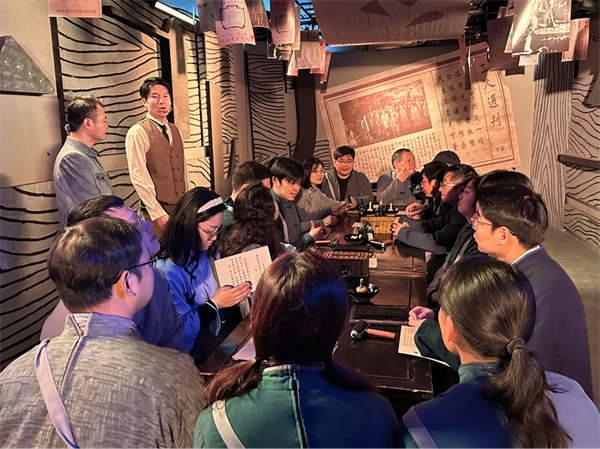 为深入学习贯彻习近平新时代中国特色社会主义思想,进一步筑牢信仰之基、补足精神之钙、把稳思想之舵,12月7日上午,校机关一党委宣传部党支部、我院播音与主持艺术专业教工党支部在洛阳红色沉浸式剧场携手开展支部共建,围绕“追寻革命曙光 坚定初心使命”主题开展沉浸式党日活动。两个支部全体党员共同参加此次活动。
