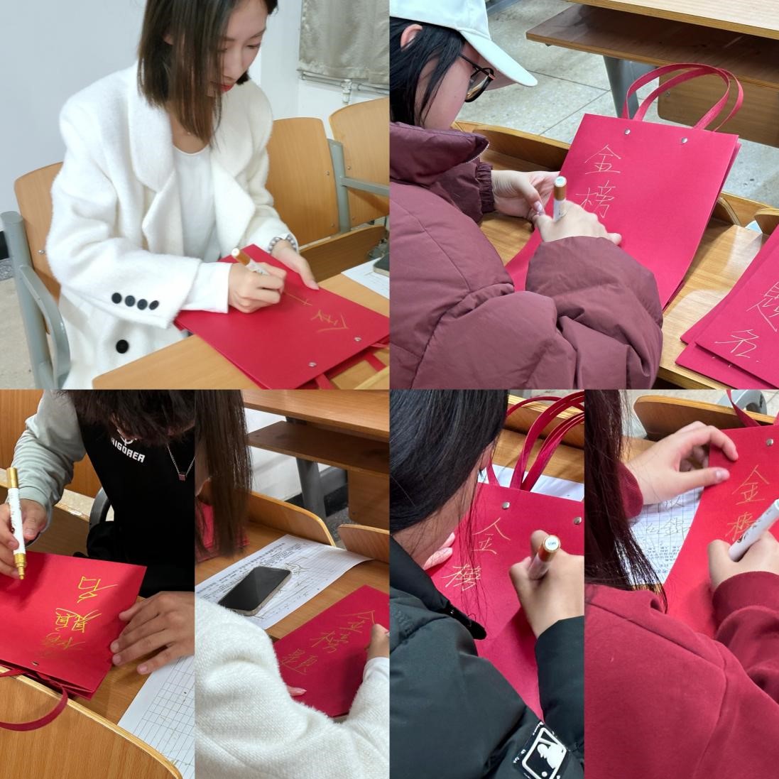 动员会伊始,20级辅导员魏蕊蕊为我院考研学生展示考研“加油大礼包”,并介绍其中寓意。红色手提袋上是我院大一大二大三的同学自发为学长学姐写上的祝福语“金榜题名,前程似锦”,表达心中美好祝愿;手提袋内准备了旺仔牛奶——“旺旺”到底、橙子——心想事“橙”、面包——考试“包”过、奥利奥——加油,奥利给、巧克力脆脆鲨——“巧克”难题以及咖啡——蓄力满满,祝愿大家好运连连,成功上岸。
