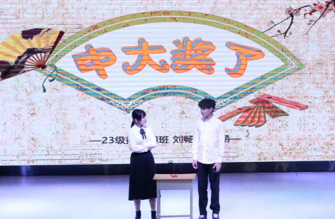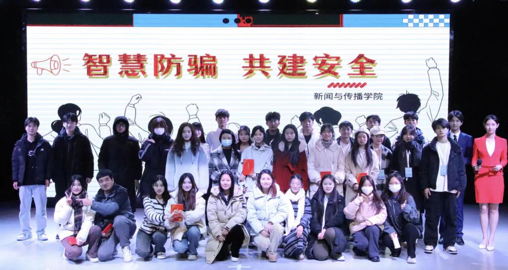 主持人介绍了本次比赛的评分规则,各小组的参赛作品围绕“智慧防骗•共建安全”的主题,通过相声、视频剪辑等形式对电信网络诈骗的常见手段和特点进行了深入解读,并对常见的电信网络诈骗手段如虚假投资、兼职刷单、网络交友等进行了详细揭示。同时,参赛者们还通过实际案例,向在场的学生展示了电信网络诈骗的危害以及如何防范并且提醒同学们要提高警惕,不轻信陌生人的信息,不泄露个人信息,不随意转账。