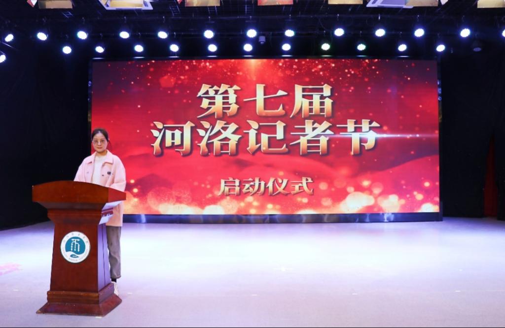 3月10日下午,第七届河洛记者节在新闻与传播学院演播厅举行启动仪式,新闻与传播学院新闻系主任李丹丹宣布河洛记者节正式开幕。