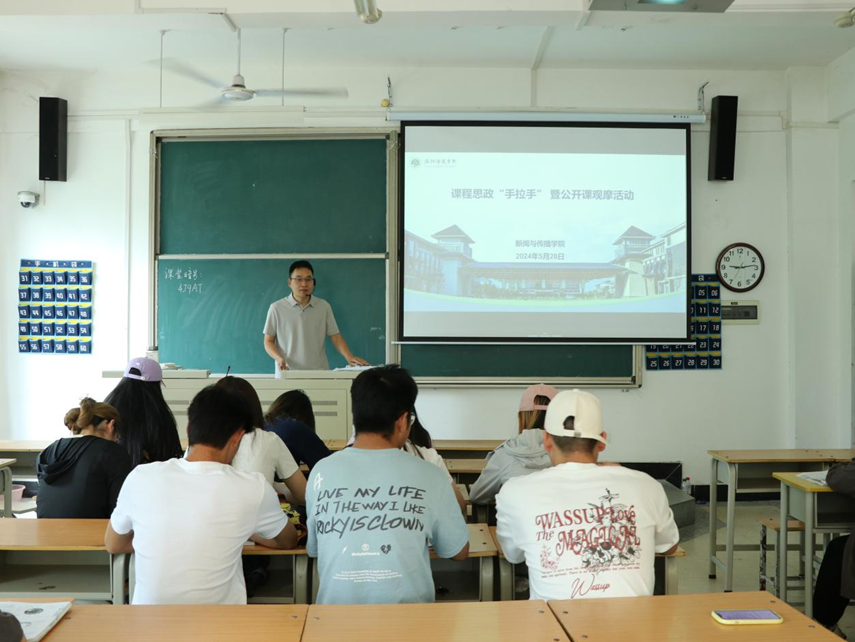 为深入贯彻落实立德树人根本任务,提升教师课程思政教学水平,充分发挥思想政治理论课铸魂育人主渠道作用,5月28日上午,我院广播电视编导专业在A9-202组织开展课程思政“手拉手”暨公开课观摩及研讨活动。本次活动主讲教师为河南省本科高校课程思政样板课项目主持人冯运生副教授,活动特邀马克思主义学院教授、思政课程指导教师于慧芳现场指导点评。学院副院长李姗姗及广播电视编导系全体教师到场观摩与交流探讨。活动由广播电视编导系主任庄禹熙主持。