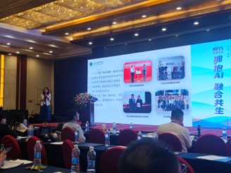 洛阳师范学院新闻与传播学院副院长李姗姗在会议主论坛部分做了题为《产教研创展全链融合 政企校媒精准共育》的报告,着重从建设基础、建设内容、建设成效三个方面分享了国家社会实践类一流本科课程《电视节目创作与实践》建设的成功案例。该课程实现了学院新闻学、播音与主持艺术、广播电视编导三个专业的融合以及资源共享,通过“政企校媒”协同育人链、“产学研创展”实训链、“订单式”供需链和“内外联动”考核链的四链建设,将新闻实践与学术研究及教学改革紧密结合,为培养融媒体时代卓越新闻人才提供充分的指导。会议主论坛由山东师范大学影视传媒研究院院长、教授马池珠和西南政法大学新闻传播学院教授贺艳分别主持,来自学界、业界的十三位嘉宾进行了主题发言和分享。