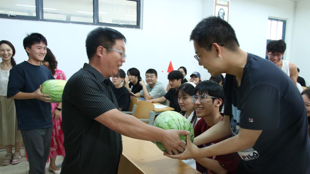领导班子成员和辅导员为在场同学送上学院准备的西瓜、牛奶和饮料,鼓励同学们坚持不懈、勇攀高峰,学有所成、实现梦想。在未来的日子里,学院将继续关注每一位学生的成长与发展,提供更加全面、深入的支持与帮助,助力学子在追梦的道路上不断前行、不断超越。
