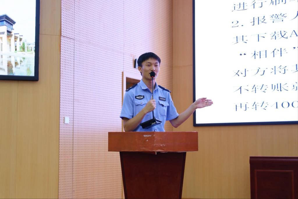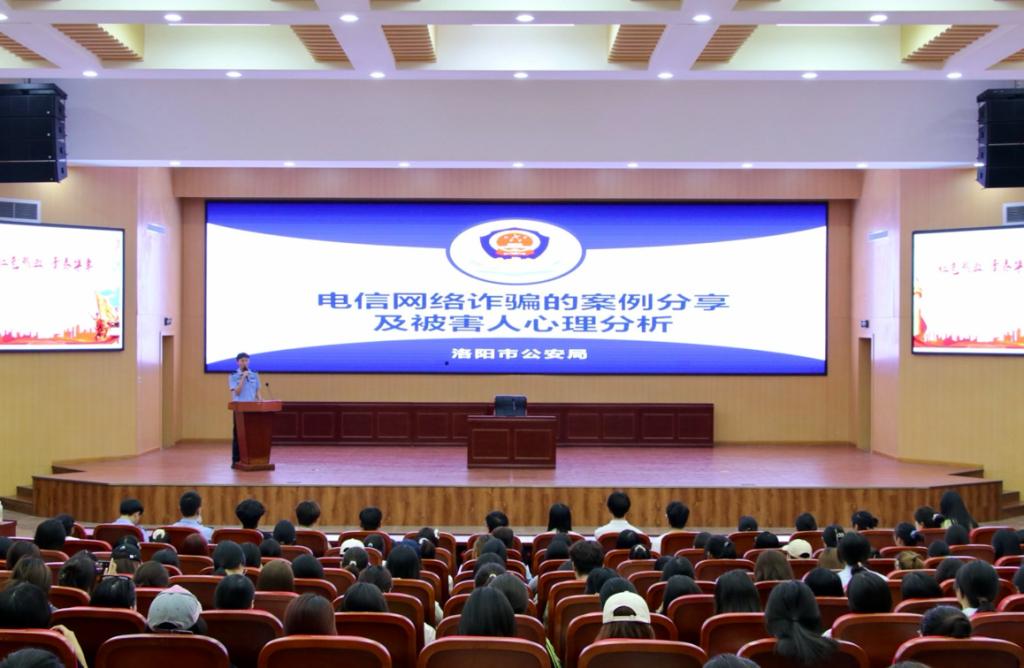 为提高在校学生反诈防骗自我保护意识和能力,切实保障学生的财产安全,9月26日,洛阳师范学院龙门书院2号学生社区在G1-112举办普法及防诈骗讲座。此次会议由辖区派出所民警王梦旭警官主讲,新闻与传播学院党委书记、龙门书院2号院院长韩守东老师,党委副书记金宜洛老师,团委副书记魏蕊蕊老师出席。全体24级新生参与会议。